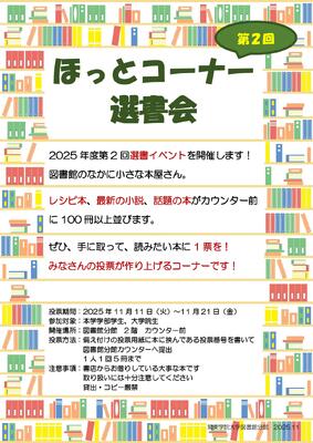 2025年度第2回ほっとコーナー選書会、春学期に続いて、秋学期も開催します。